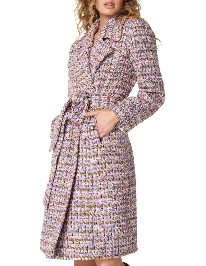 Elliatt’s Chapelle Coat has been carefully designed with remarkable detailed stitching to shape this perfect look. The beautifully coloured textured fabric compliments the structured neckline and tie around waist band. This Coat has plenty of space for building up all the layers needed in winter. Shop the ultimate throwback look now.       Â
