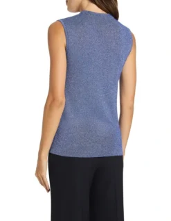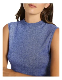 Shimmering endlessly within rich cobalt blue, this knit top creates an easy, lightweight look made from a luxe wool blend yarn. Fitted through the body, the top features a neat sleeveless design with a high mock neckline, further complemented by fine rib trim detailing at the neck, armholes and straight body hem.