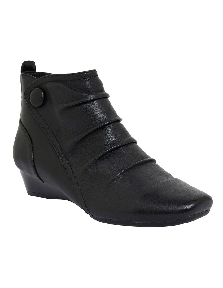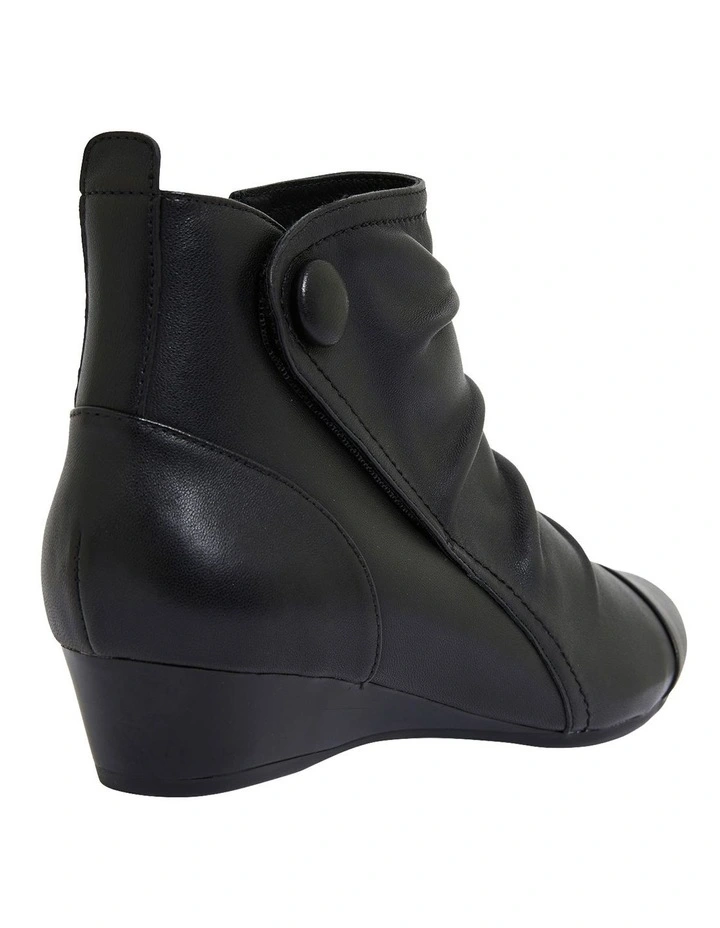 SEVILLE is your ideal boot silhouette for underpinning everyday ensembles. They’re crafted using a leather upper with a scrunched design then set on a comfortable low-mid heel.Â