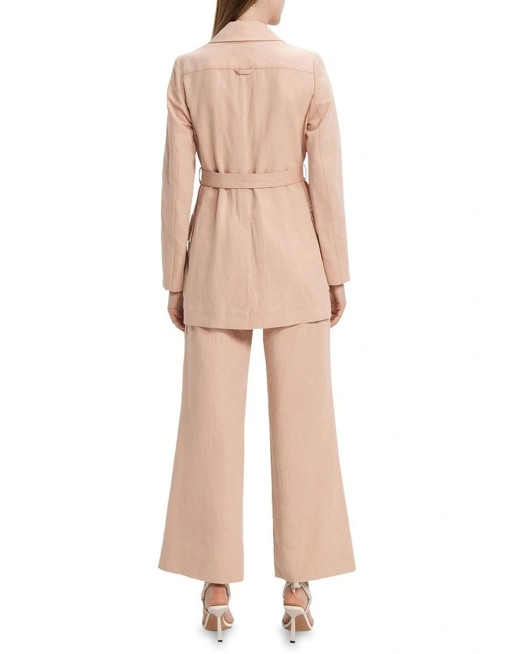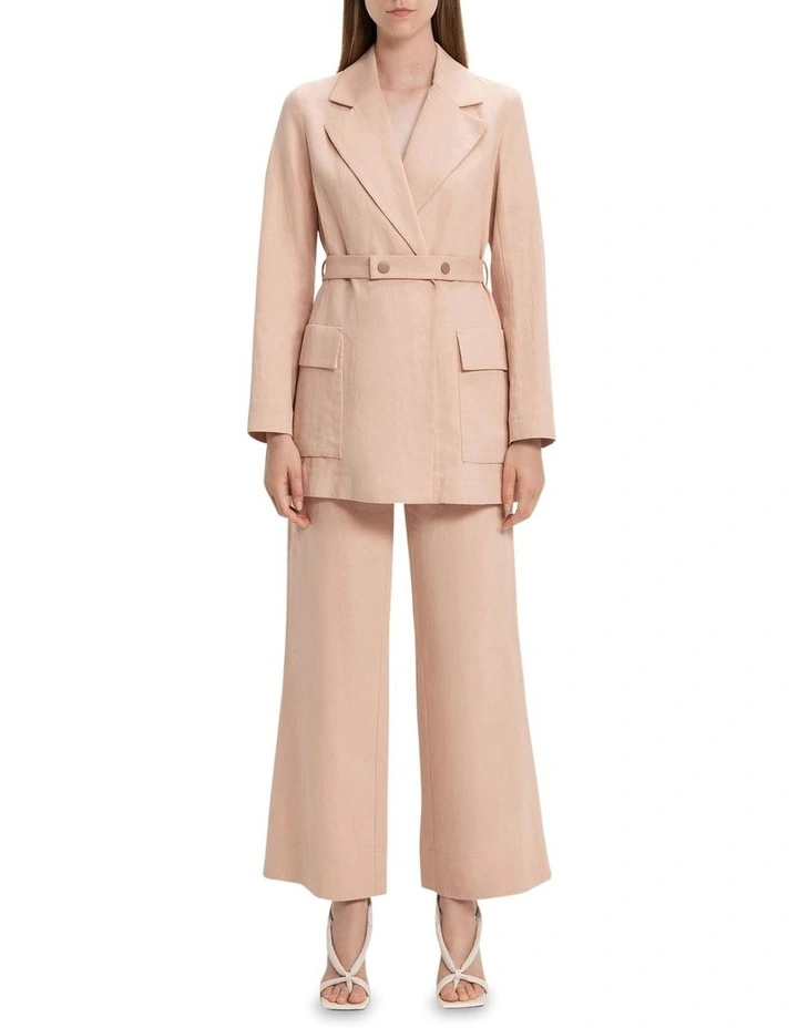 Cut from a soft cotton linen blend herringbone, this utility jacket features a belt with snaps to cinch you in at the waist and patch pockets. Style back with denim for an off duty look or with the matching pants for a refined look.