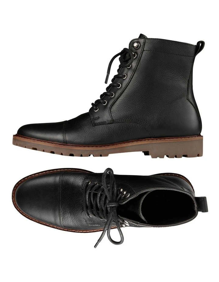 The Mack Leather Military Boot in Black is a wardrobe staple that packs a punch. The classic lace up military style is easy to incorporate into your wardrobe, even if you are a loyal chelsea boot wearer. We think the Mack looks best with your favourite pair of worn in denim jeans and an overshirt.