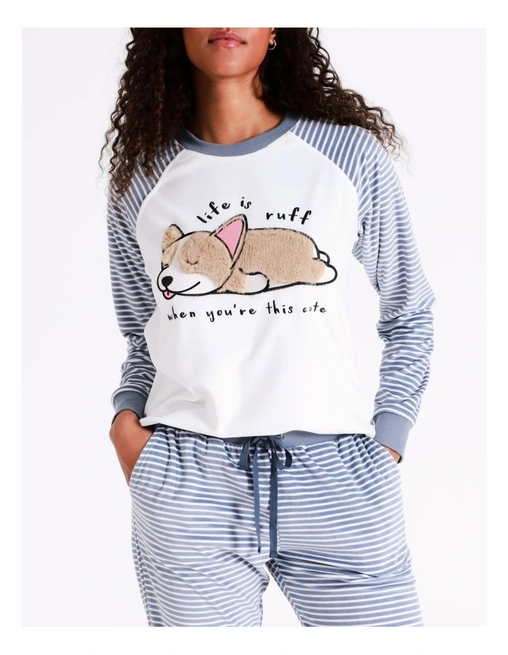 Soho Gigi Novelty Velour PJ Pant in Corgi Stripe